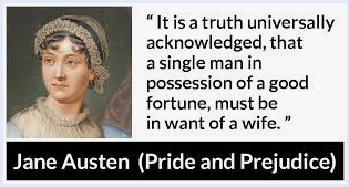 Austen makes us laugh with this droll observation because we know that this is not true. Young men with a good fortune are not always in want of a wife, but many single young women (and ambitious families) wish that they were. Austen uses this ironic and humorous observation to set the tone for the entire novel. She is going to make fun of society and its expectations at every opportunity, and she’ll make us laugh while she does.