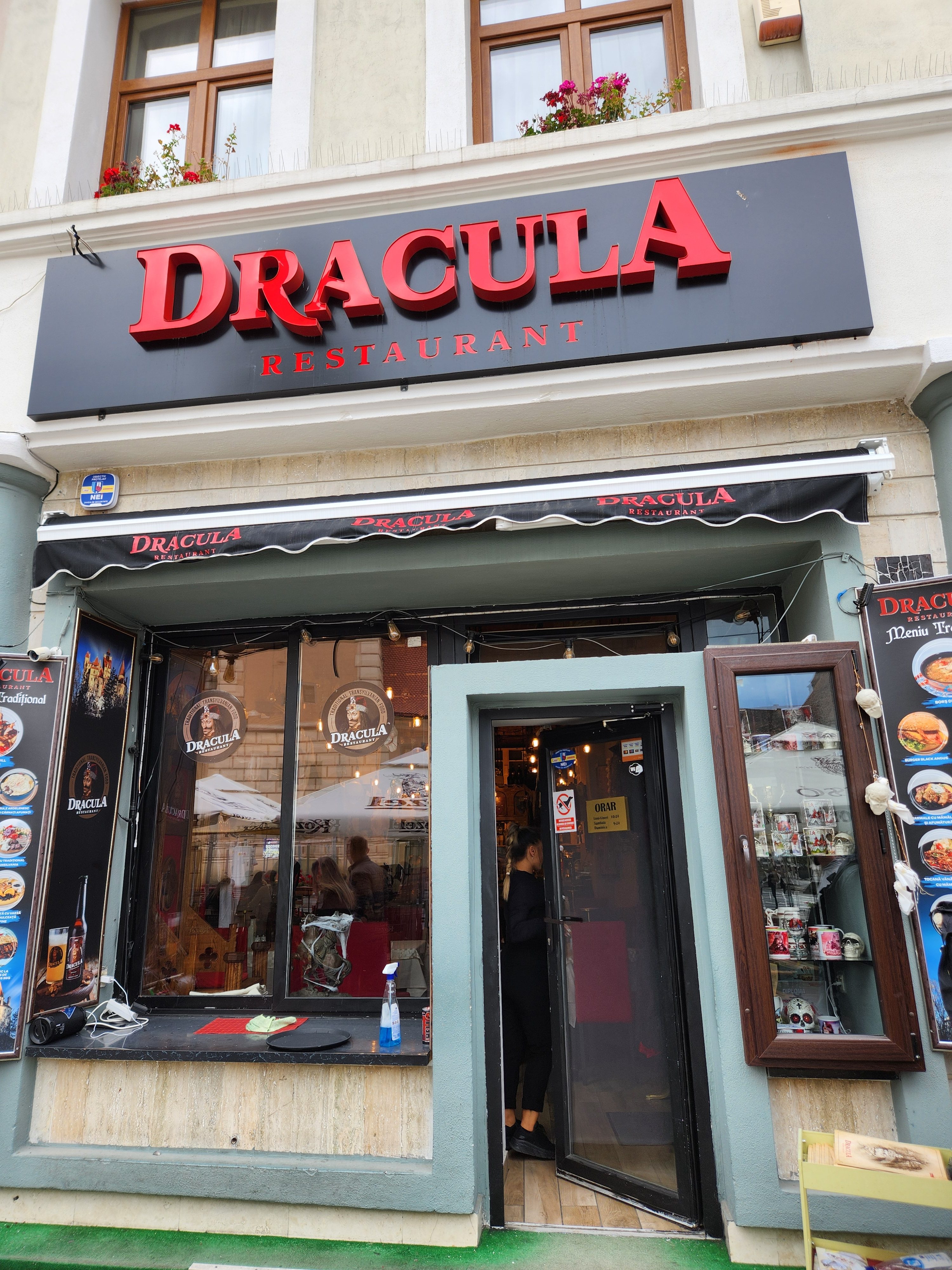 For those who have never visited, many Romanian restaurants are narrow storefronts with limited inside space. The main seating is outside. In the chillier months, there are tents with little fires burning at strategic places for one to stay “warm”. For me, dinner was had at Dracula Restaurant, and it was delicious.